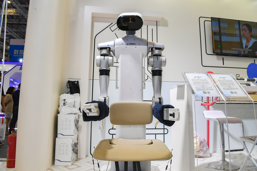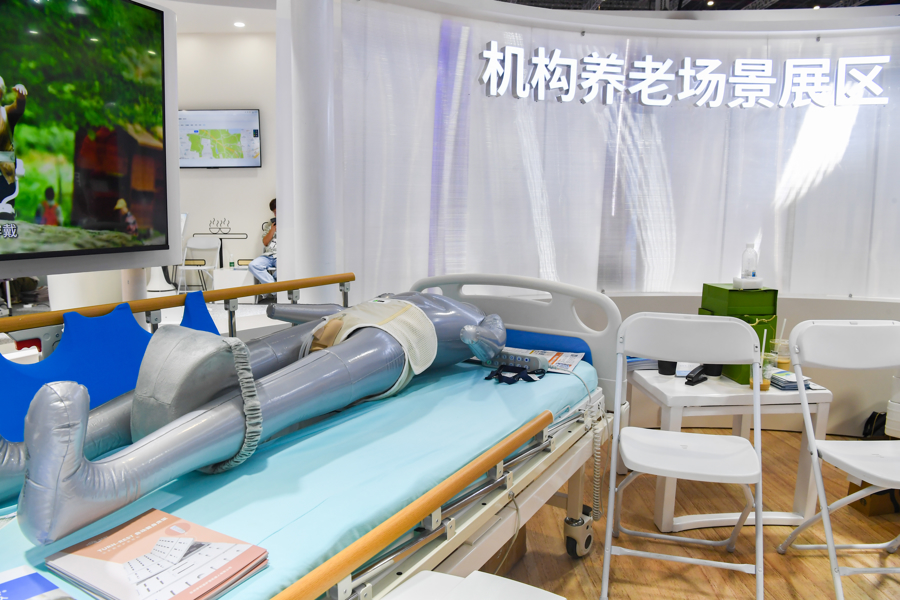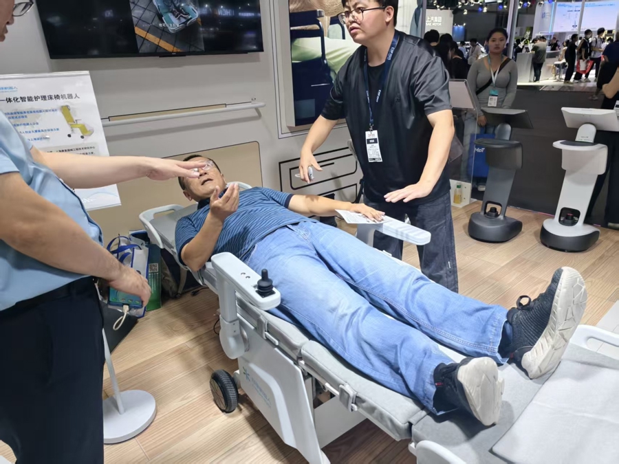 一个假人躺在护理床上,腰腹部穿着一条特殊的米黄色“短裤”,一根软管连接“短裤”与床下的智能设备……苏州伊利诺护理机器人有限公司的展示场景,正是许多失能老人的真实写照。该项目也入选工信部民政部智能养老服务机器人结对攻关和场景应用试点项目。